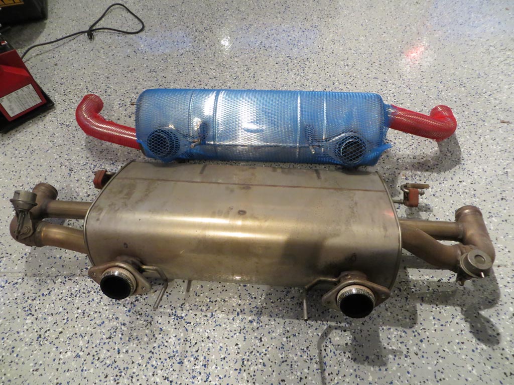 A while back I replaced the stock muffler on my Aston Martin with a QuickSilver SuperSports-Plus system. This is much lighter (24lb vs 40lb) than the stock unit, and has a great sound.